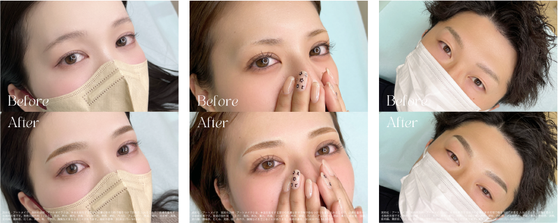 ただし、残っているアートメイクの色味やデザインの濃さによっては、ご希望のデザインへの変更が難しい場合や、先にレーザーによる除去が必要になる場合がございます。