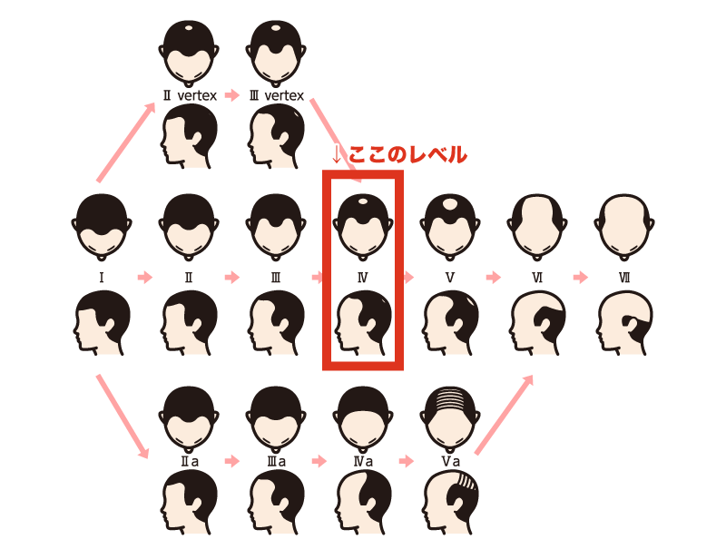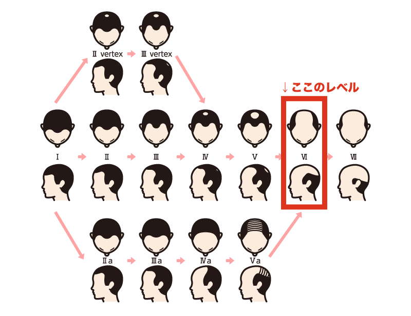 以下は、ハミルトンノーウッド表で進行度6のお客様が毛根再生注射の治療を受けられた症例(治療3ヶ月後)です。