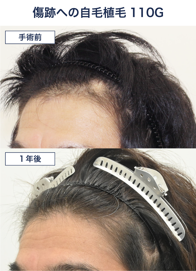 幼い頃にできた傷跡への植毛です。狭い範囲でしたので110グラフトで傷跡を改善することができました。