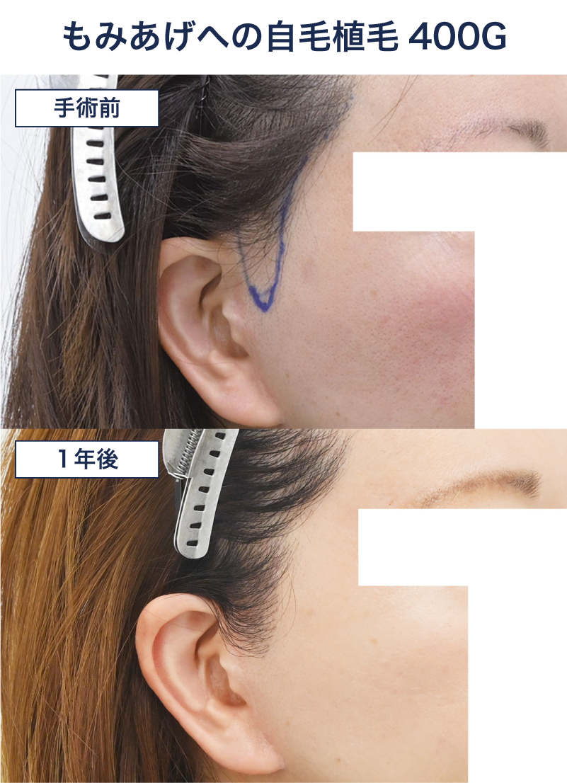 こちらのお客様は400グラフトで両方のもみあげを改善できました。