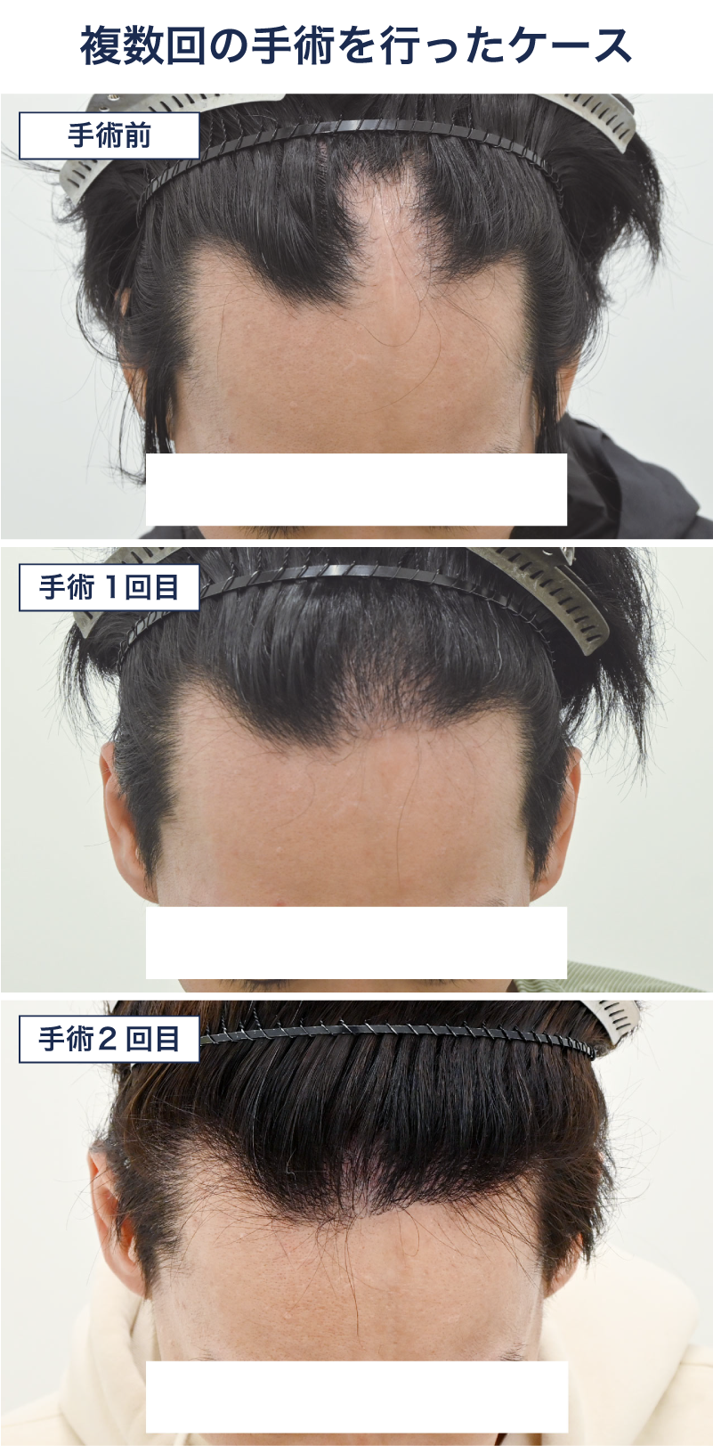このようなケースは、あらかじめ2回植毛を行うことを前提として手術計画を立てるといったような提案をさせていただくこともございます。