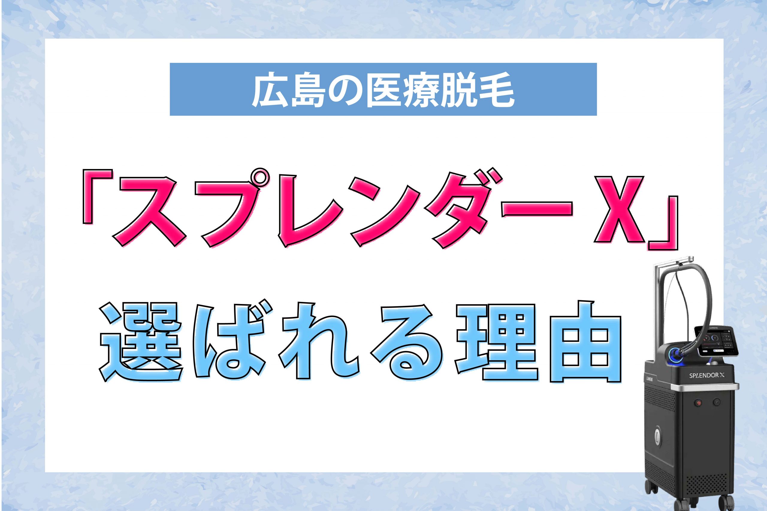広島で「スプレンダーX」を指定するならココ。2波長同時照射で、濃いヒゲも産毛も逃さない。