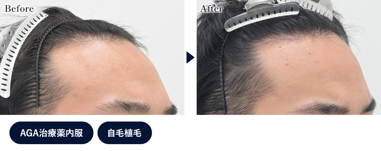 M字部分の角が少し埋まっているのが確認できました。このように、M字部分を少し改善するだけでも、髪の悩みが解消されるケースは多くあります。