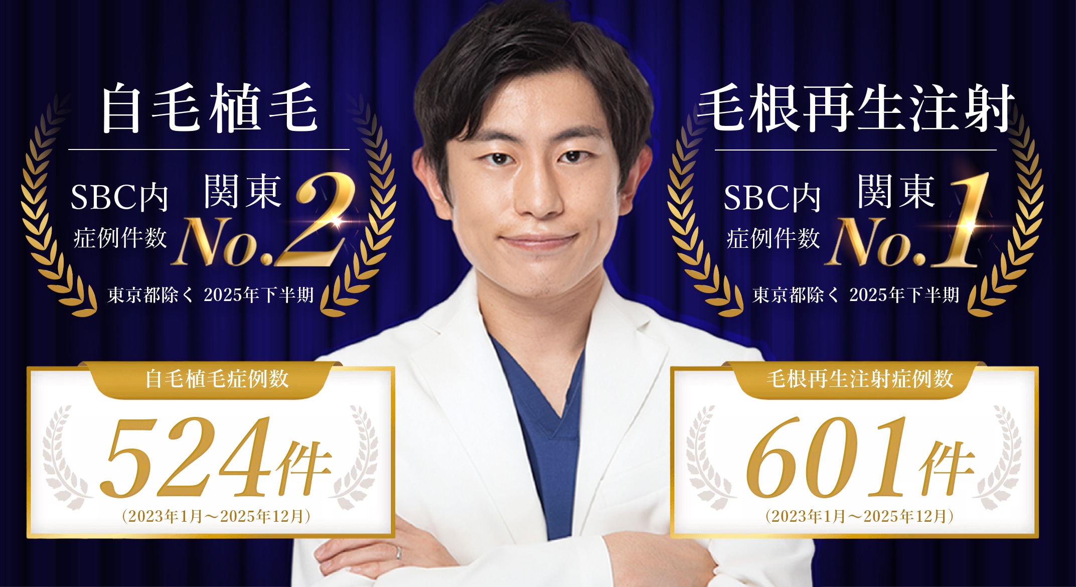 高田医師は、自毛植毛において「2025年下半期 関東エリアNo.2」 の実績を誇り、できる限り傷跡や痛みに配慮しながら、状態の良い毛根を丁寧に採取する技術を有しています。