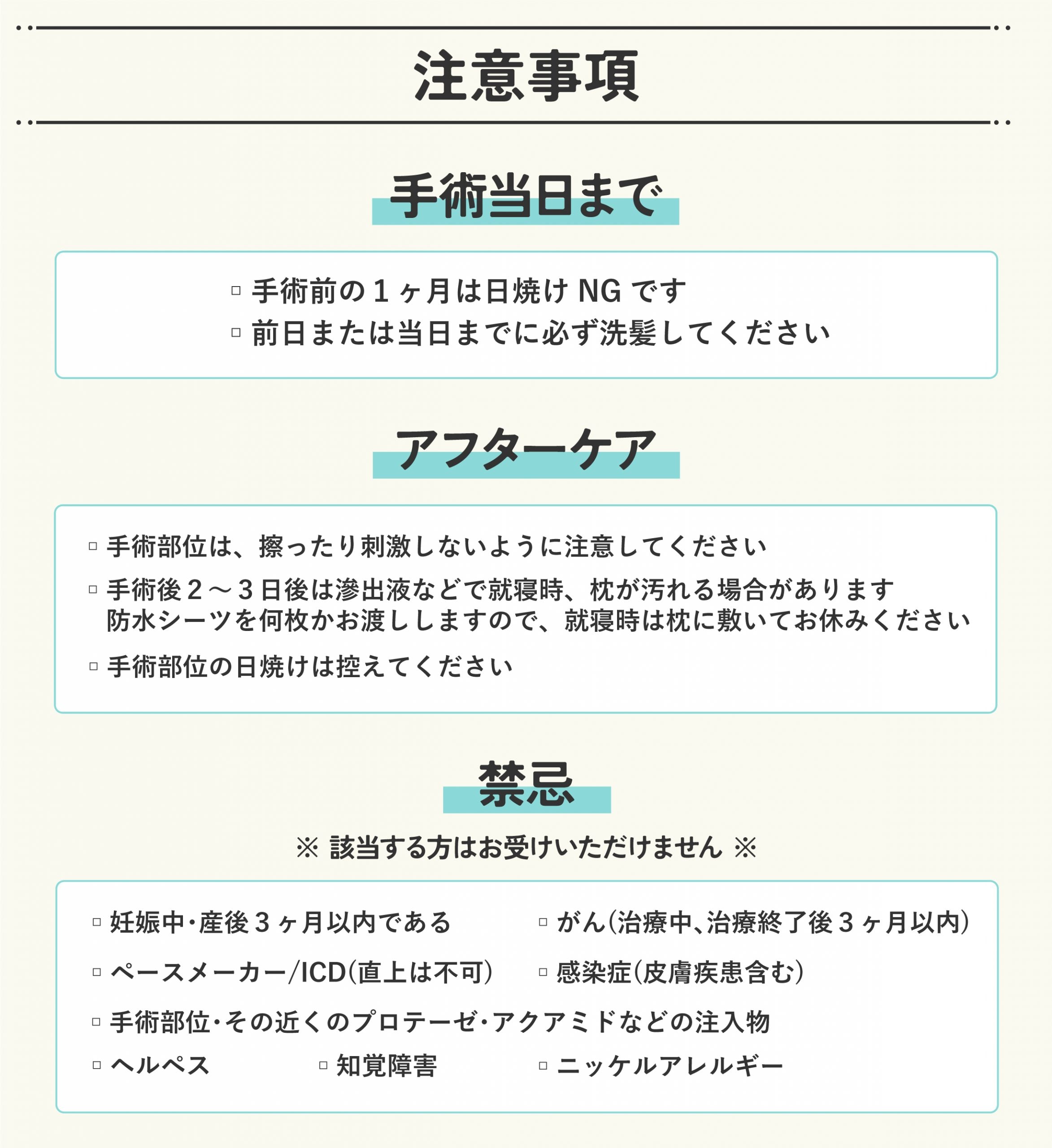 施術を考えている方に注意事項