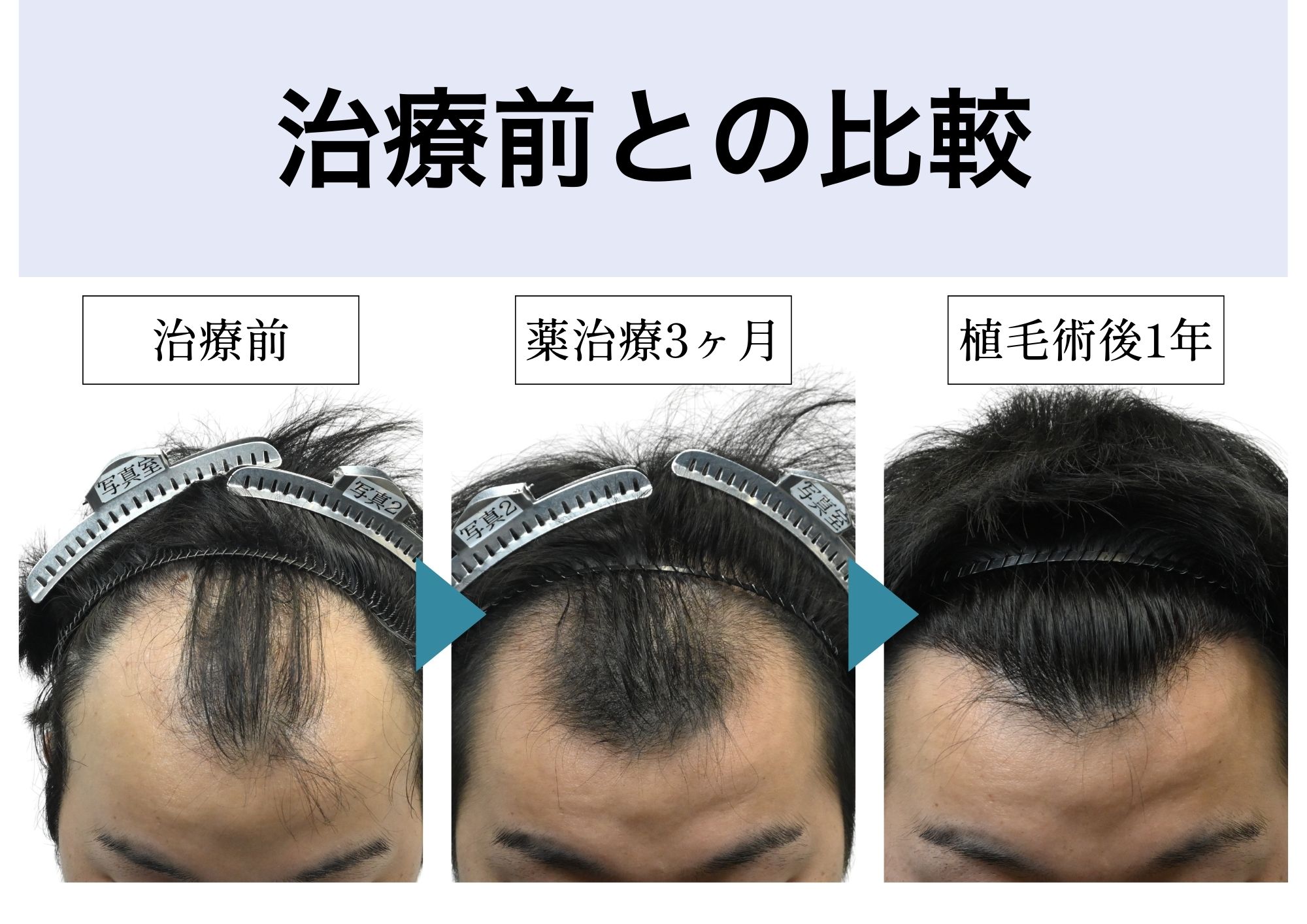 いきなり植毛ではなく、まずは薬治療で治せる部分は改善していこうということで、治療方針を立てました。