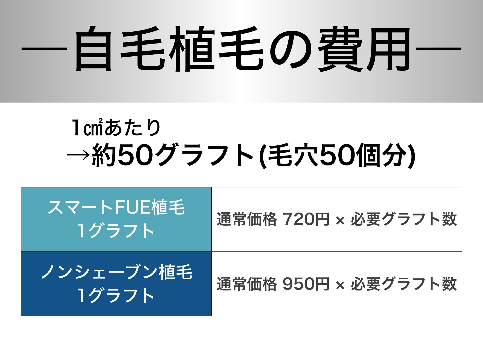 グラフト数に応じた施術費用のみの料金設定になります。