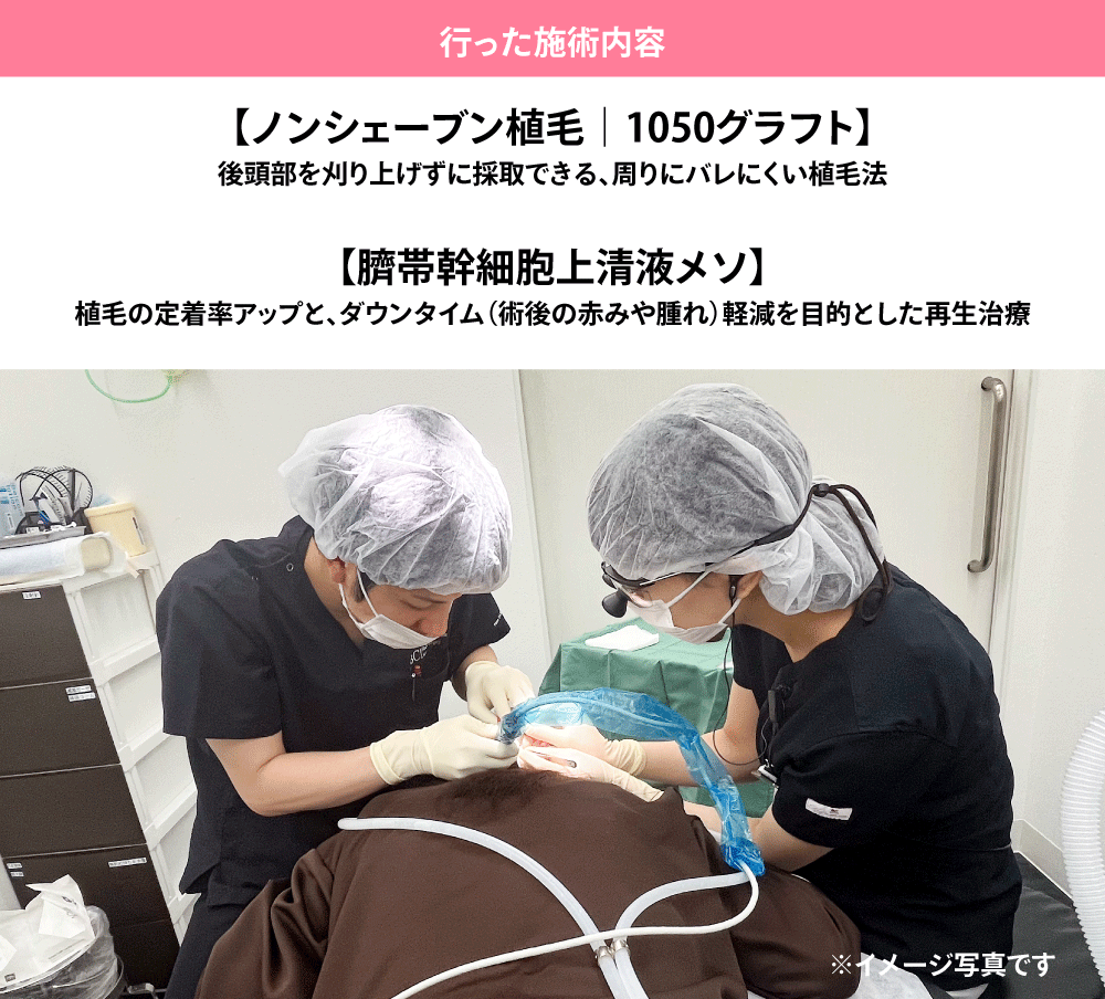 しっかりと話し合いを重ね、今回は「サイド(M字部分)のみをしっかり埋める」という、イベントに向けての最善のデザインをご提案し、ご納得いただいた上で施術を行いました。
