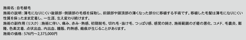 自毛植毛は後頭部の髪の毛を採取し、生え際に移植します。