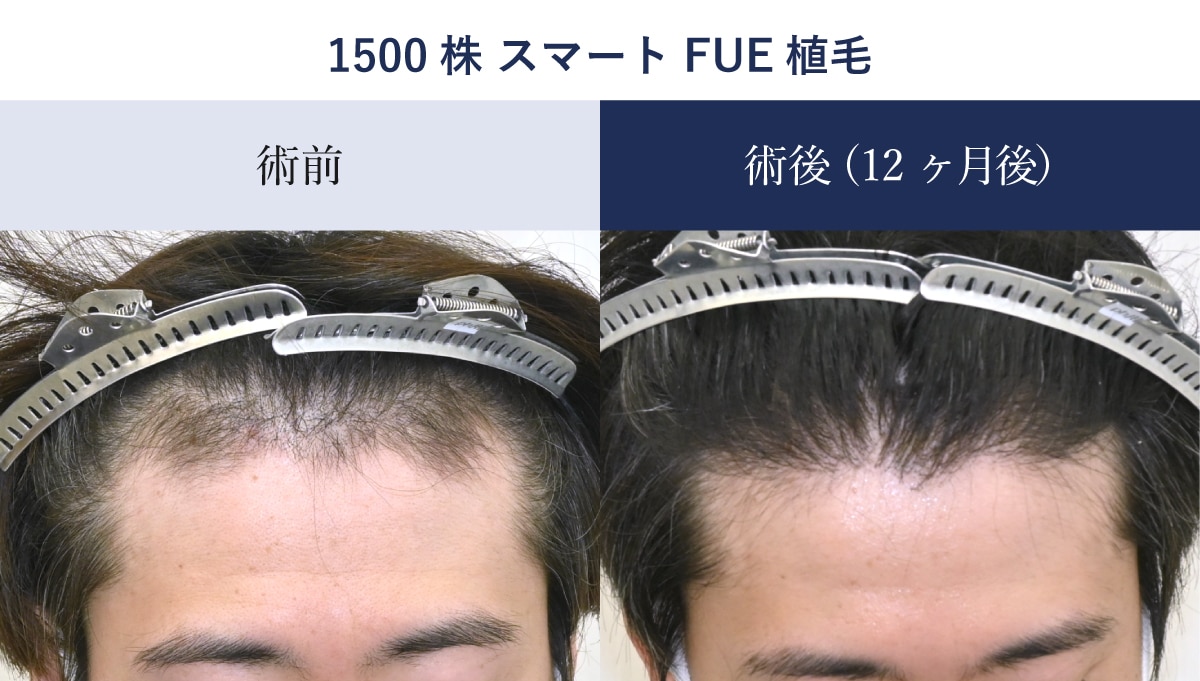 術後12ヶ月地肌が透けないほどの密度が完成し、しっかりボリュームの改善が可能です。