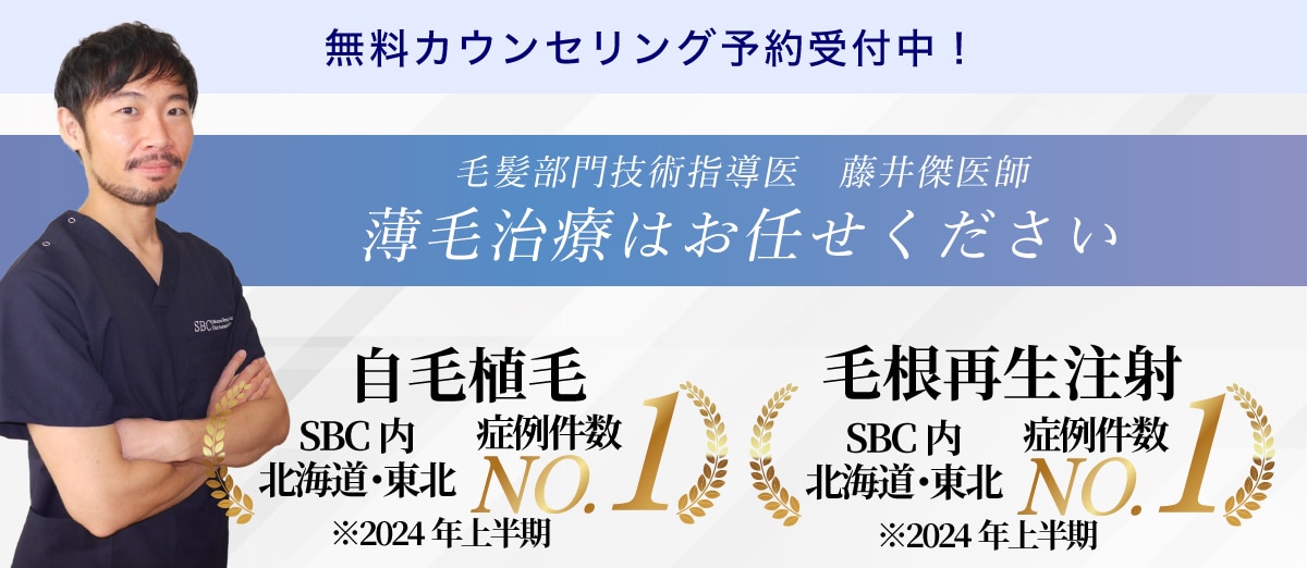 SBC東北エリアで唯一、薄毛治療専門の女性医師が在籍しております。お気軽にお悩みをお聞かせください。