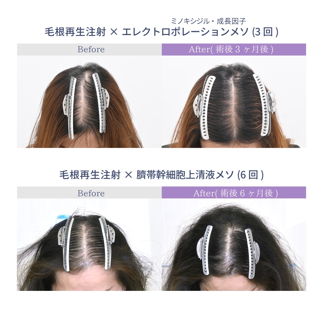 薄毛治療薬と再生治療を併用して行うことで短期間での発毛・ボリュームUPの効果実感を期待できます。