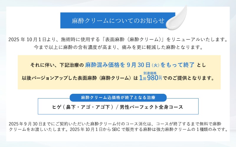 さらに、ヒゲ脱毛(鼻下・あご・あご下)6回コースをご契約で、2,000円相当の麻酔クリーム1本プレゼント
