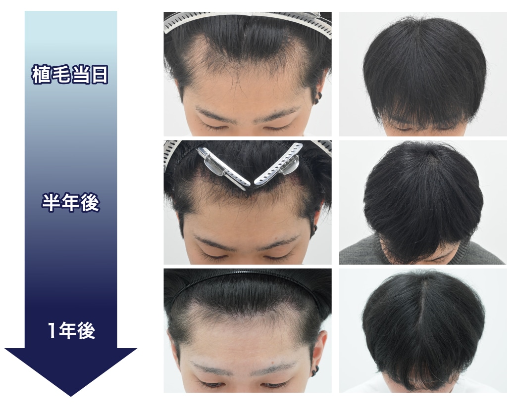 ここからは、実際に自毛植毛を受けた患者様の声をもとに、植毛手術後から1年後までの経過を時系列でご紹介します。