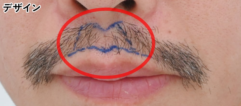 毛の向きや周りの毛に合わせる技術で、唇の直上を避け、鼻下のカーブも自然に再現しています。