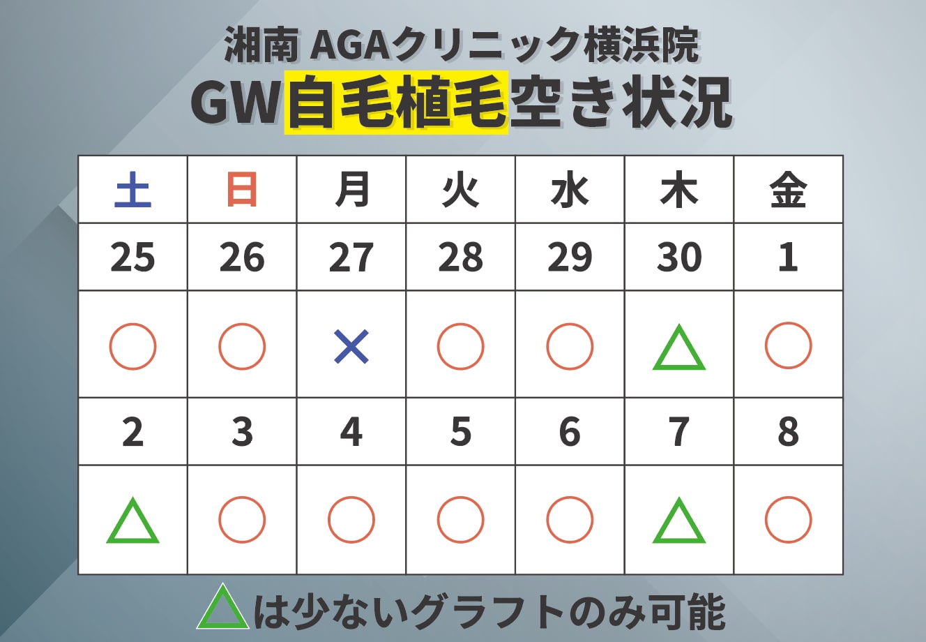GWの自毛植毛先行予約がスタートしました!(4/25~5/6)