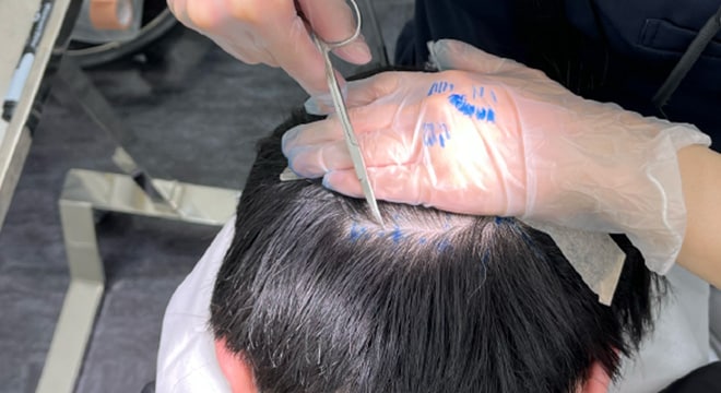 ノンシェーブン植毛は、採取部位を剃らず1本1本手作業でカットして採取・移植する施術です。