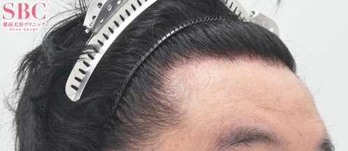マイクロスコープにて、平均のヘアライン近傍にはあまり軟毛が認められず、植毛術が適応であると判断しました。
