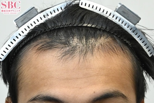 20代男性、治療歴なし、生え際改善希望の方です。毛根再生注射、臍帯幹細胞上清液メソ、AGA治療薬の内服で治療を開始されました。治療開始から3か月後、毛根再生注射1回、臍帯幹細胞上清液メソ3回終了時の経過です。生え際(M字)の密度増加を認めております。まだ治療開始3ヶ月ですので、今後のさらなる改善が期待出来ます。