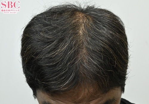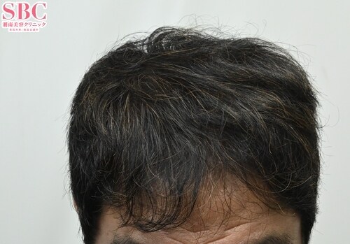 内服での治療歴が5年ほどあり、当院でも以前半年ほどメソ治療をされていた40代男性の方です。生え際部分と頭頂部が気になるとのことで、臍帯幹細胞上清液メソを受けられました。治療開始から2か月後、臍帯幹細胞上清液メソ3回終了時の経過です。写真で頭頂部の透け感の改善認めております。臍帯幹細胞上清液メソはこれまで治療歴ある人にもお勧めできる治療となっておりますので、是非お試しください。