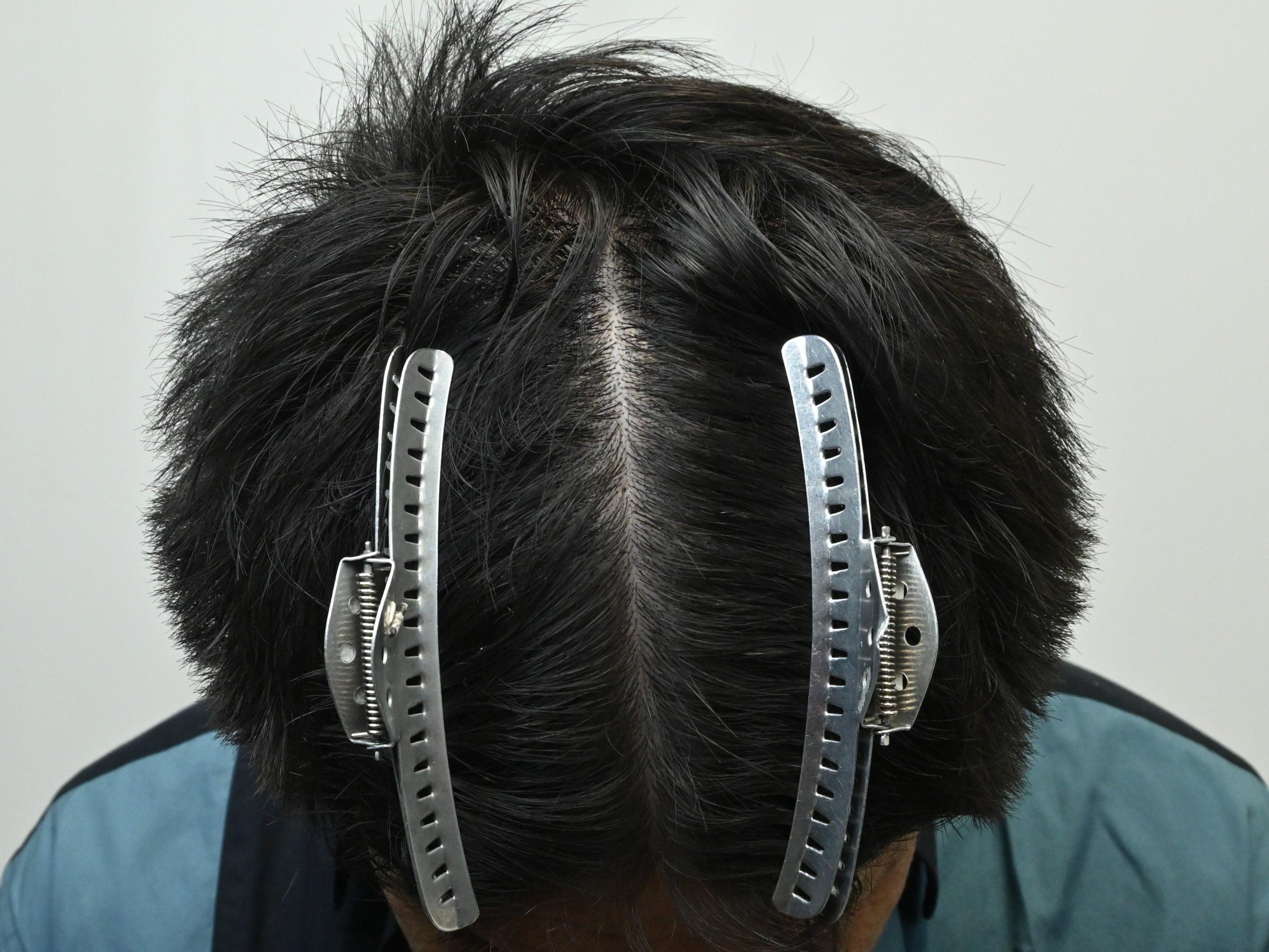 30代男性、治療歴なし、全体的に透け感が気になり改善希望の方です。毛根再生注射、臍帯幹細胞上清液メソ、AGA治療薬の内服で治療を開始されました。治療開始から5か月後、毛根再生注射1回、臍帯幹細胞上清液メソ3回終了後の経過です。生え際だけでなく全体の密度増加を認めております。まだ治療開始5ヶ月ですので、今後も改善が期待出来ます。