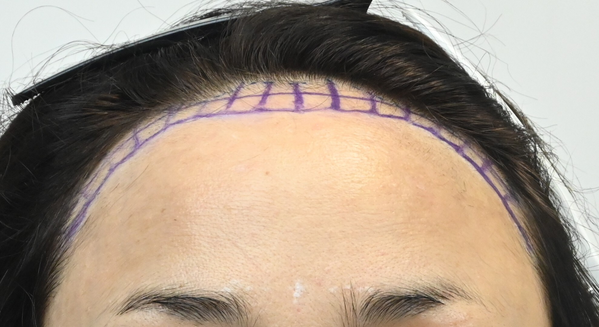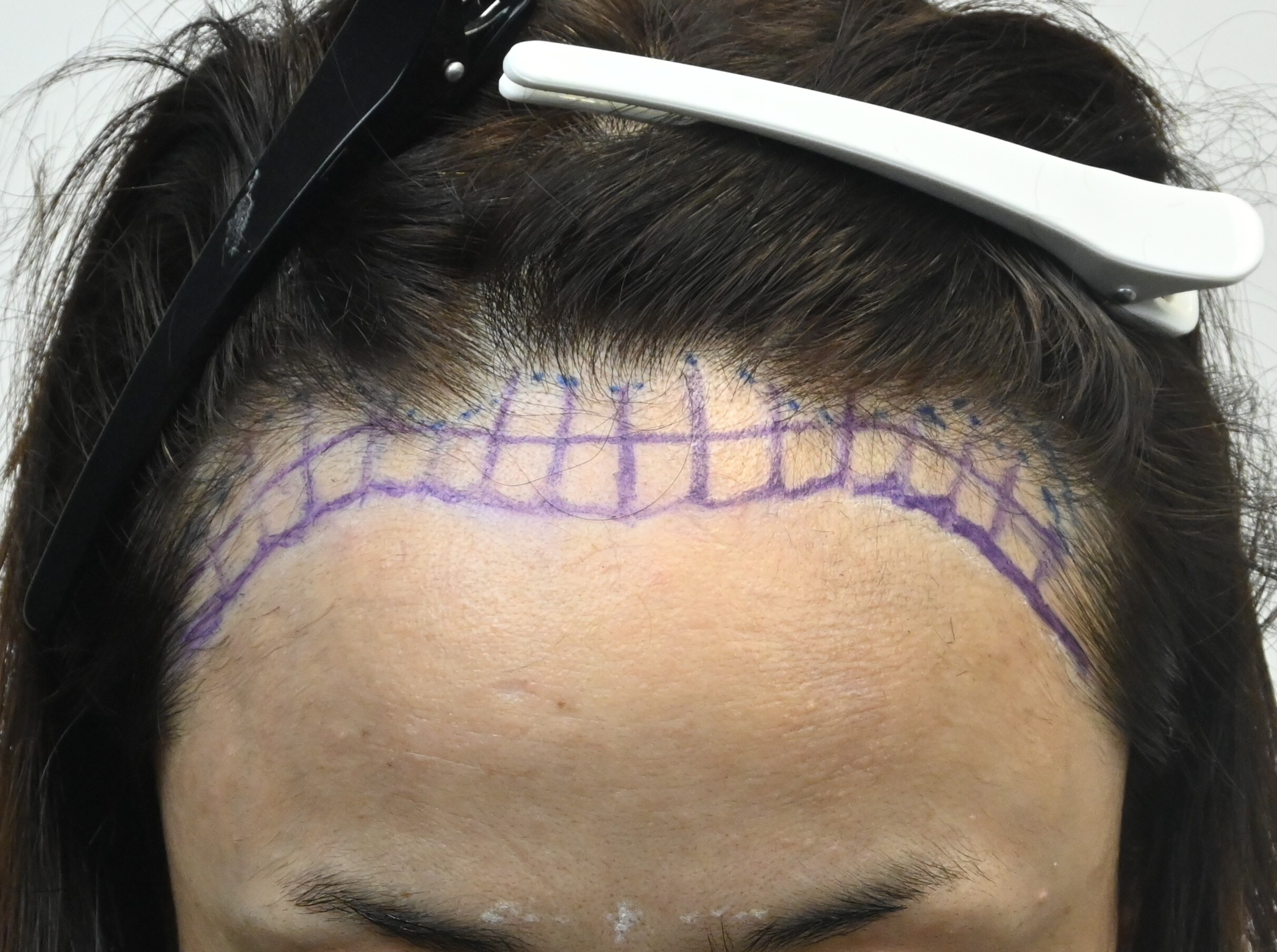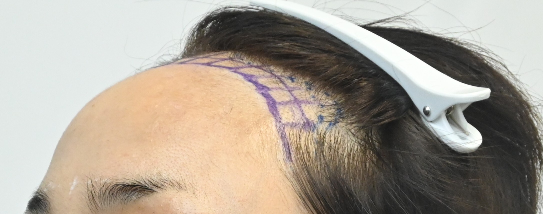額の広さが約6㎝になるようにデザインし、植毛を行いました。