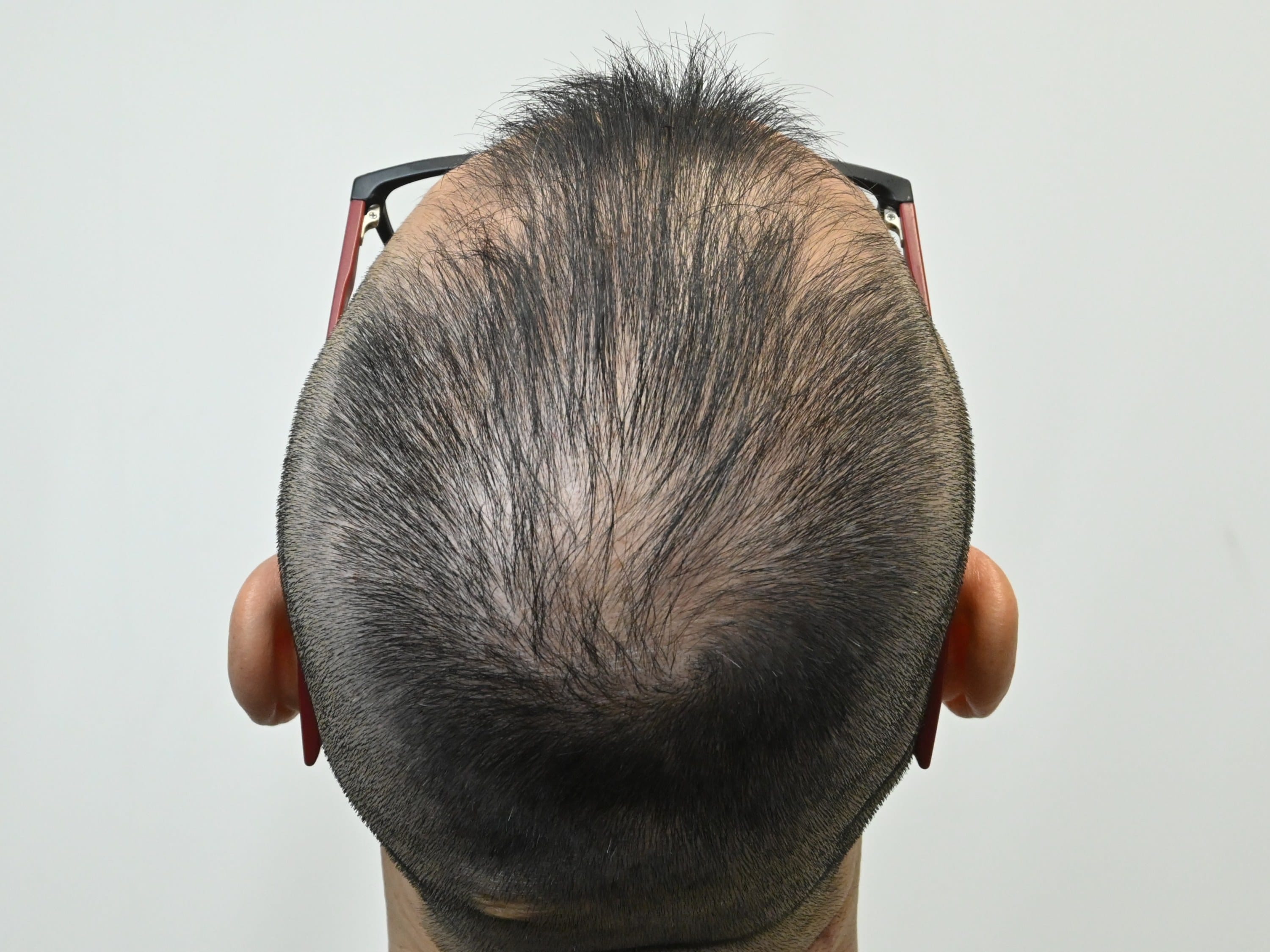 50代男性、過去に治療歴あるも中断し悪化、全体的に透け感が気になり改善希望の方です。毛根再生注射、エレクトロポレーションメソ、AGA治療薬の内服で治療を開始されました。治療開始から3ヶ月後の経過です。治療内容は下記の通りです。・毛根再生注射1回・エレクトロポレーションメソ(BENEV)5回・AGA薬内服全体的に大幅な密度増加を認めております。まだ治療開始3ヶ月ですので、今後のさらなる改善が期待出来ます。