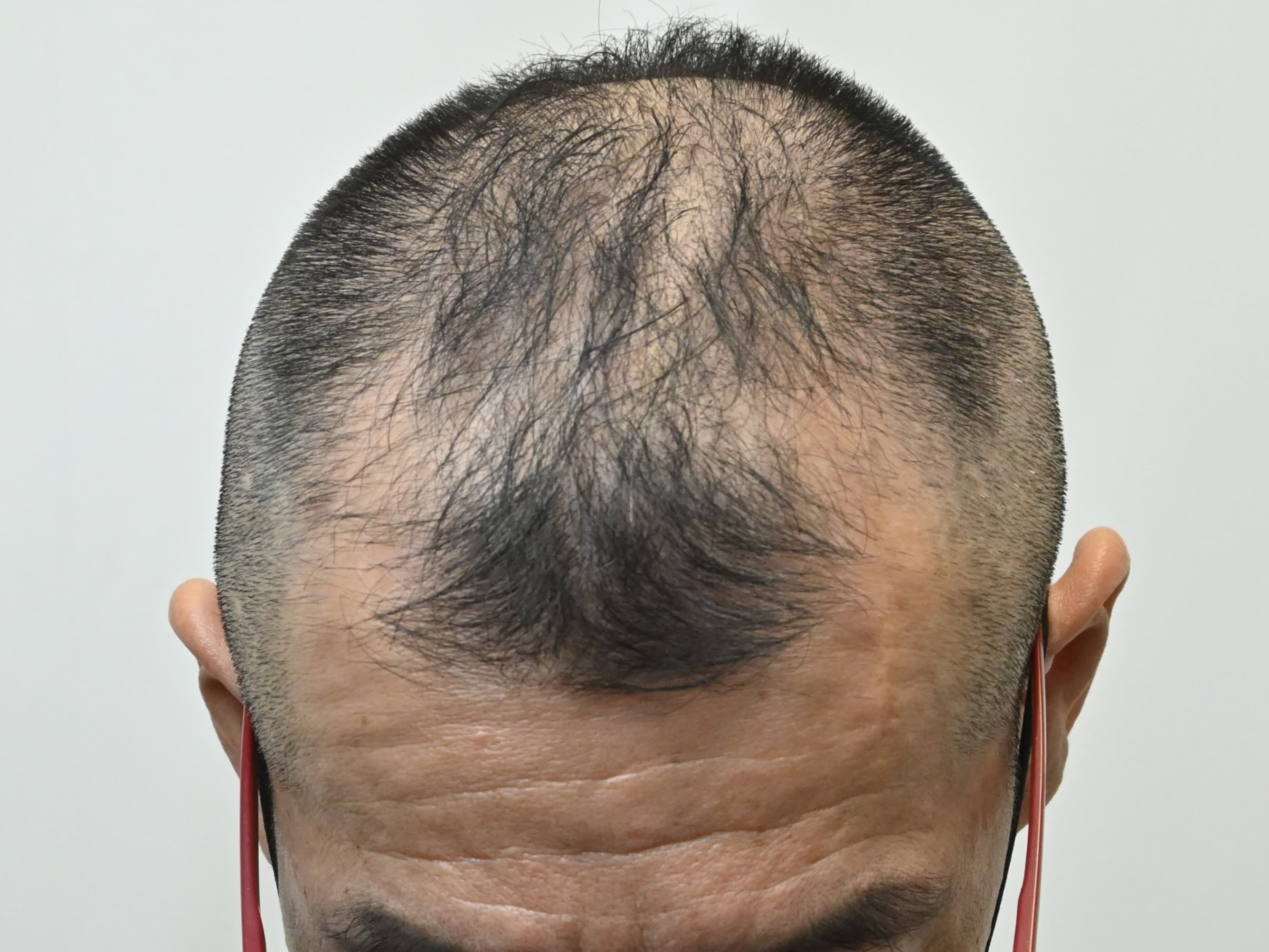 50代男性、過去に治療歴あるも中断し悪化、全体的に透け感が気になり改善希望の方です。毛根再生注射、エレクトロポレーションメソ、AGA治療薬の内服で治療を開始されました。治療開始から3ヶ月後の経過です。治療内容は下記の通りです。・毛根再生注射1回・エレクトロポレーションメソ(BENEV)5回・AGA薬内服全体的に大幅な密度増加を認めております。まだ治療開始3ヶ月ですので、今後のさらなる改善が期待出来ます。