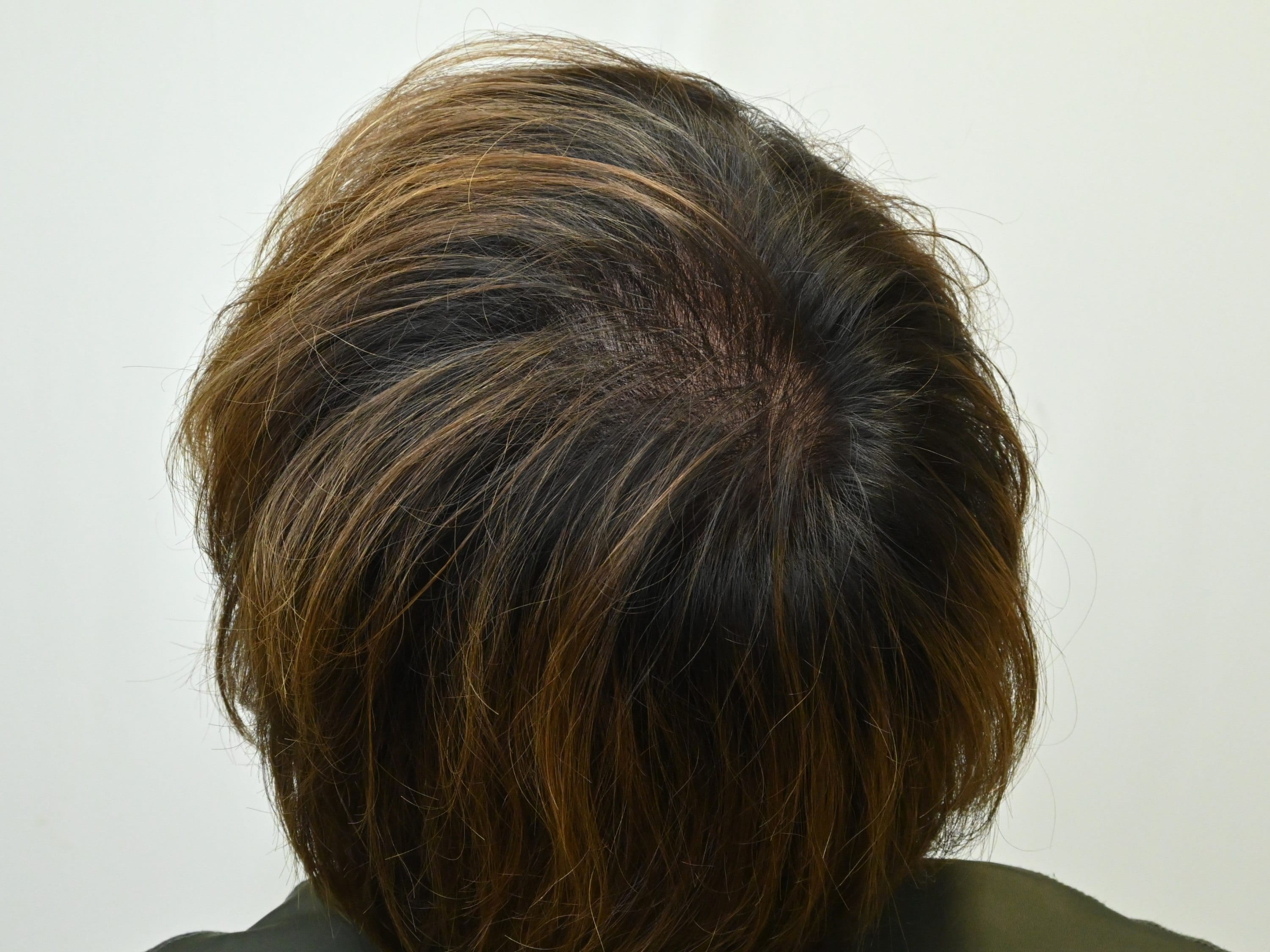 30代男性、治療歴なし、全体的な透け感の改善希望の方です。毛根再生注射、臍帯幹細胞上清液メソ、AGA治療薬(フィナステリド内服、外用薬)で治療を開始されました。治療開始から3ヶ月後、毛根再生注射1回、臍帯幹細胞上清液メソ3回終了時の経過です。ミノキシジル内服なしでも、全体的にしっかり密度増加を認めております。まだ治療開始3ヶ月ですので、今後のさらなる改善が期待出来ます。
