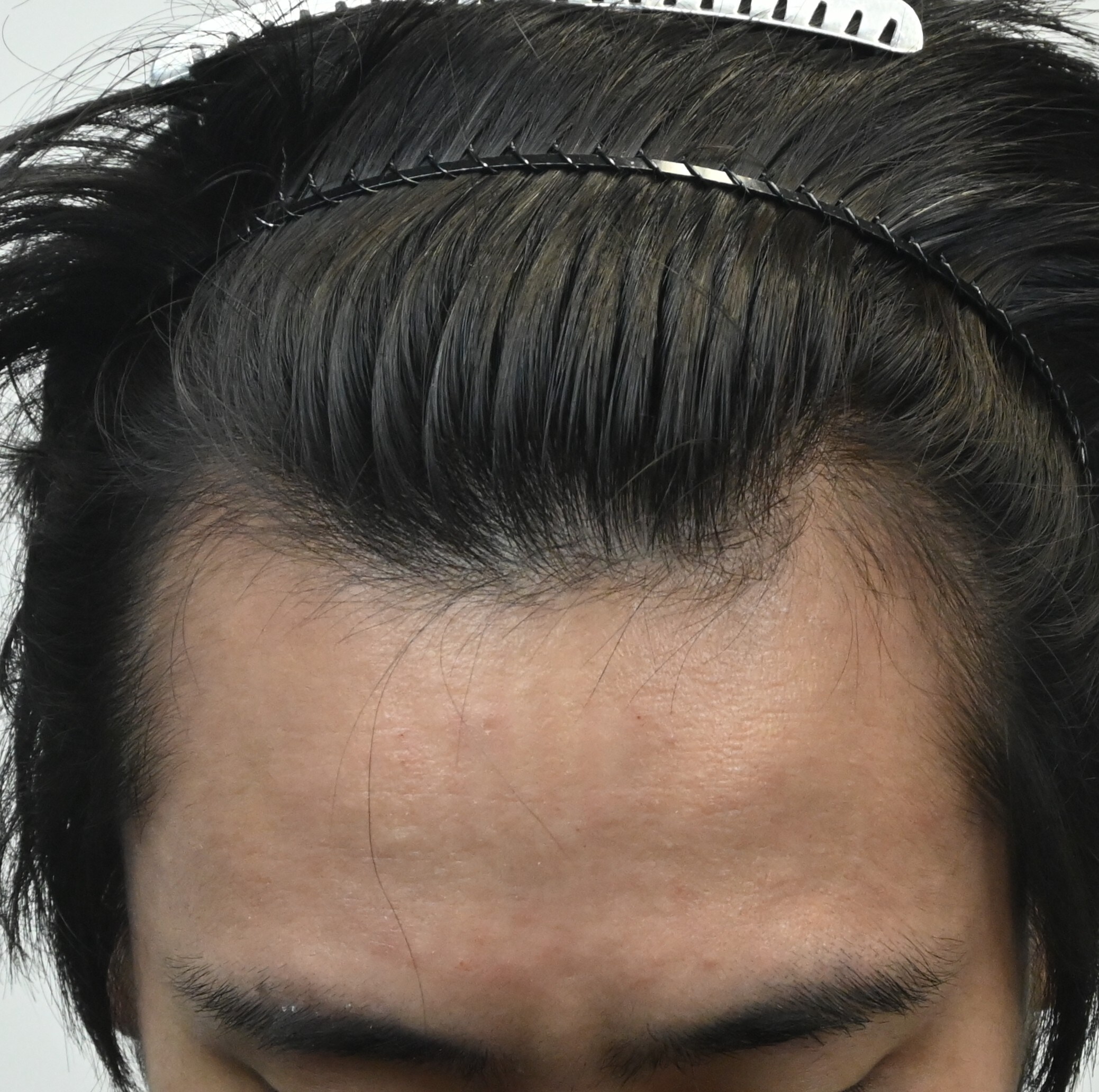 20代後半男性の症例です。1年ほど前から前頭部の薄毛が気になるとのことで受診されました。