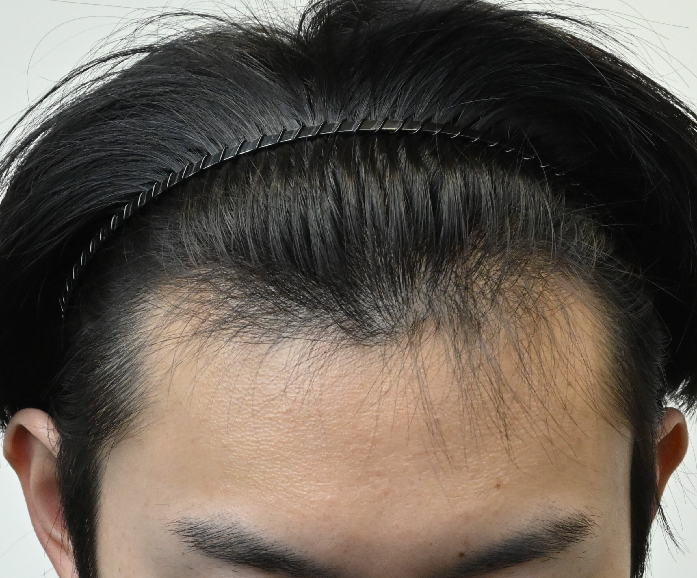 20代前半男性の症例です。父方母方いずれにも薄毛家系あり、4年ほど前から生え際を気にされて受診されました。